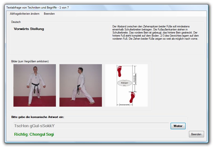 WinTKD-Trainer - Textabfrage Deutsch => Koreanisch